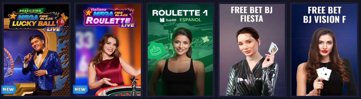Nabízíme live blackjack, ruletou, baccarat a poker v několika variantách. Každý stůl má různé sázkové limity pro všechny typy hráčů.