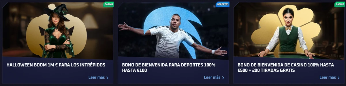Ofrecemos un bono de bienvenida del 100% hasta €500 más 200 giros gratis para nuevos jugadores. Esta promoción te permite duplicar tu primer depósito y explorar nuestros juegos con fondos adicionales. Nuestra plataforma cuenta con más de 5,000 juegos de proveedores reconocidos como NetEnt, Microgaming y Pragmatic Play. Incluimos slots, juegos de mesa, casino en vivo y apuestas deportivas.